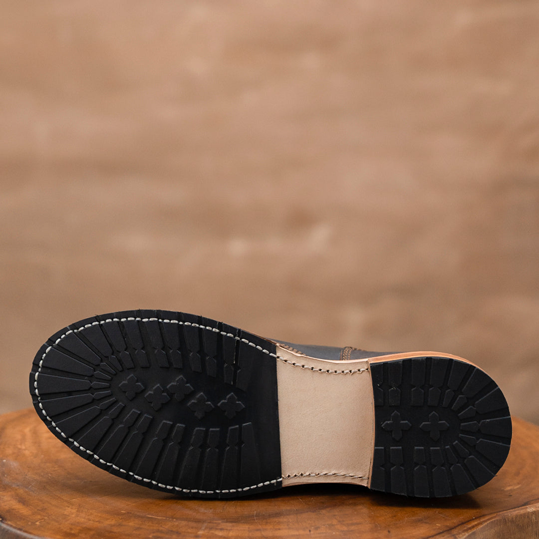Welt, Insole & Other StuffOur welt, Insole & Heel stacks are all crafted out of thick vegetable tanned buffalo leather ensuring the highest quality. We use natural cork footbed, iron and brass nails. All these materials are top notch, super durable & natural ensuring a long lasting boot for years to come.