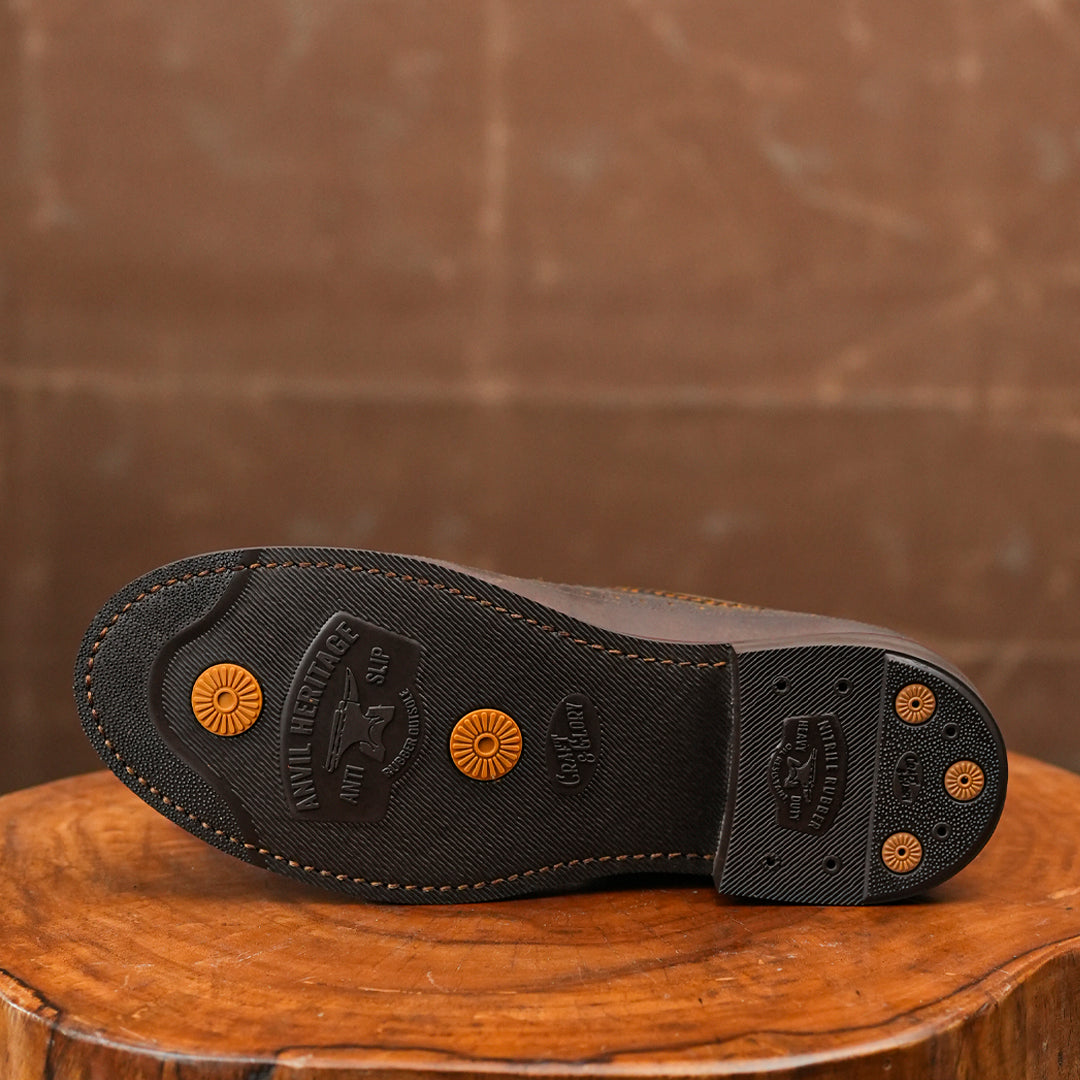 The result is a shoe that sits comfortably between two worlds - refined enough to dress up, rugged enough to take a beating.