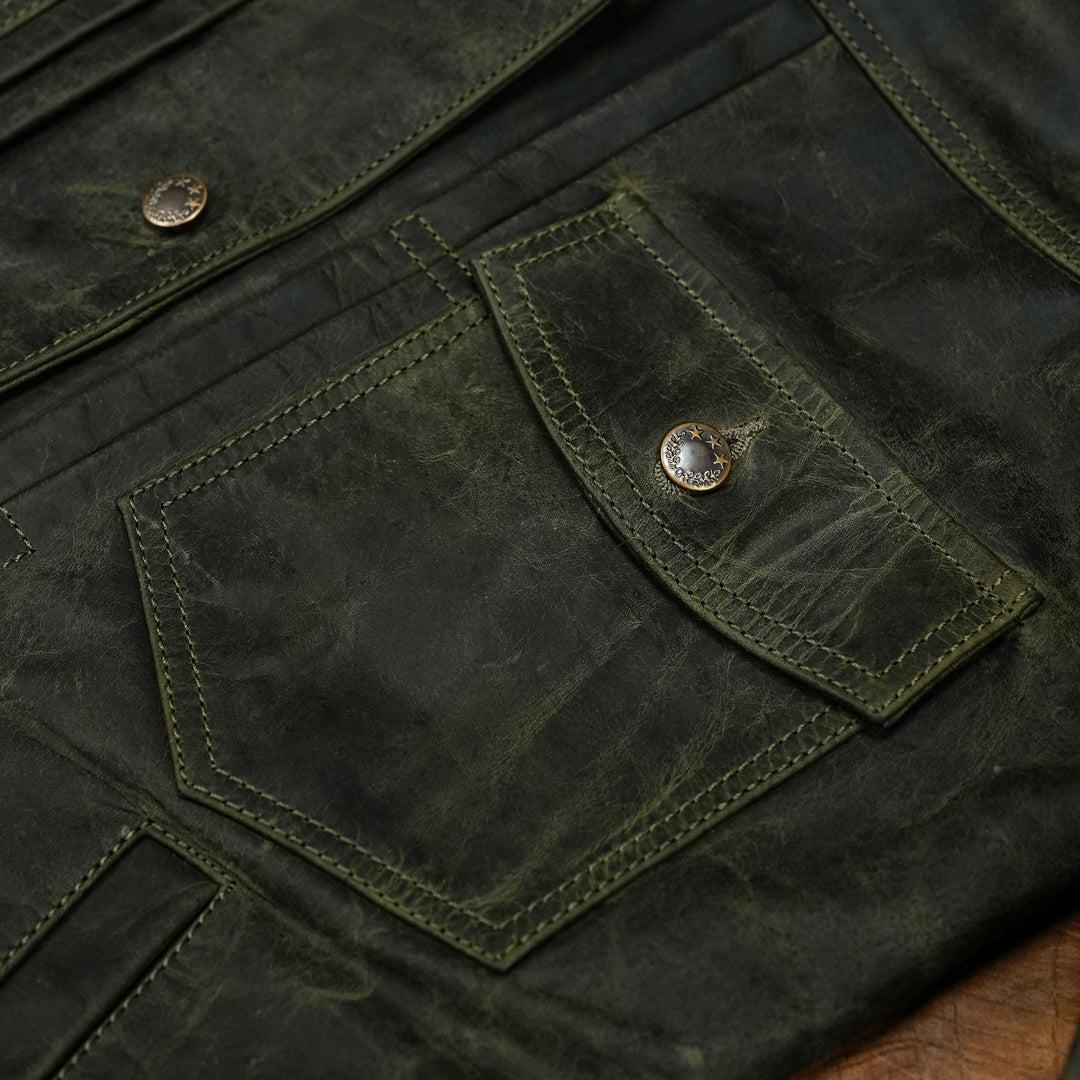 Trucker Type 2 Leather Jacket (Vintage Green)